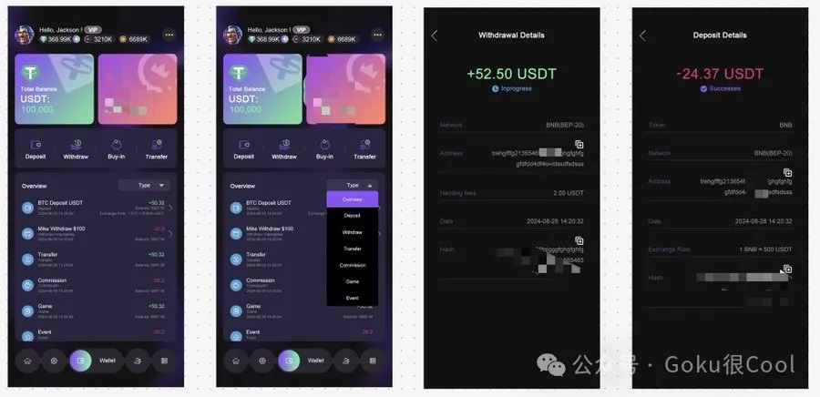 2、支持用户内部划转资产,这个是我们老产品中,用户最喜欢用的功能,因为 CHIPCHIP 里面打牌可以避免好友打牌欠钱跑路不结算,带入之前都是真金白银带入,不要挑战人性,局头跑路,好友赖账的事儿,每个人身边都发生过无数次,方便朋友之间快速划转资产。