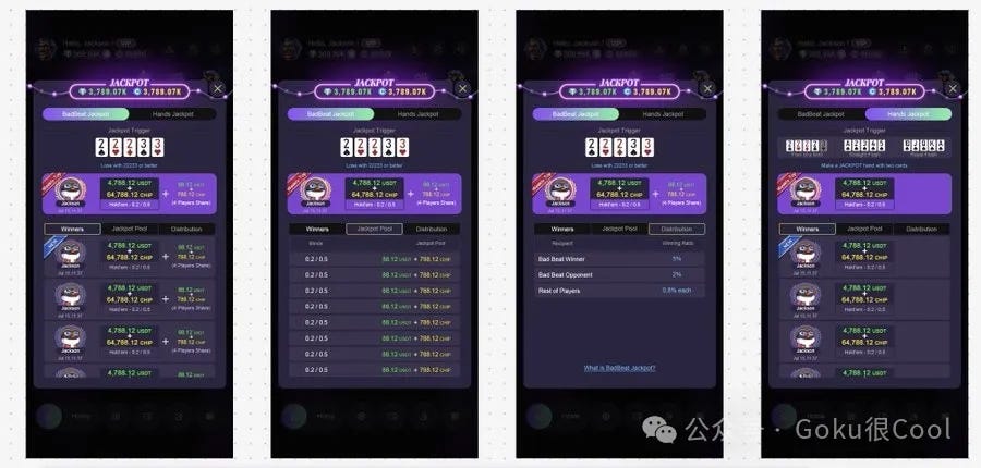 我们曾经有一个意淫的模式,就是类似国外 Pokernow 的打法,给用户和社区提供一个随时开启德州 MTT 的功能并支持尽可能多的币种,让很多项目方手里的币,例如一些没有实用价值的 Meme 币可以用来打牌,这个需求经过数据来看,转化十分惨淡。
