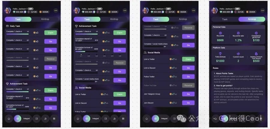 4、支付系统、用户成就系统(Airdrop)佣金系统、社区仪表盘、游戏版块,五大版块我一会儿也会逐一介绍。