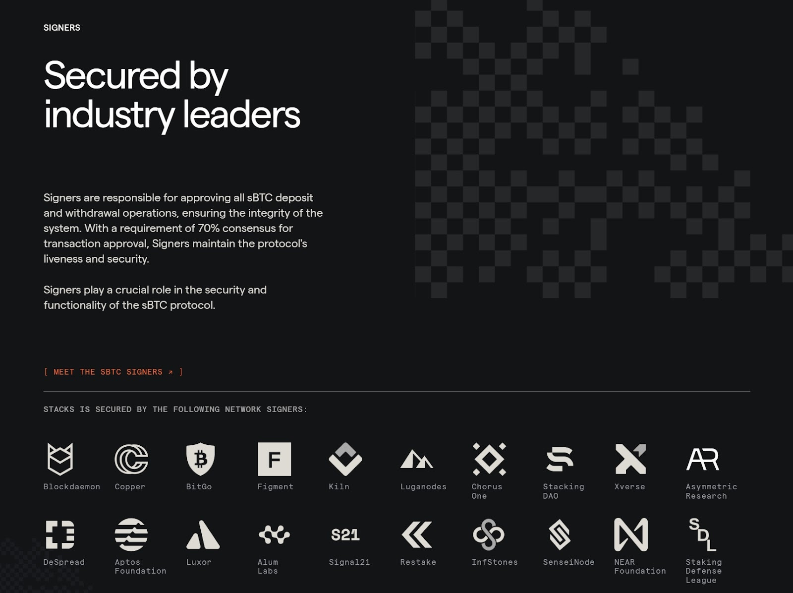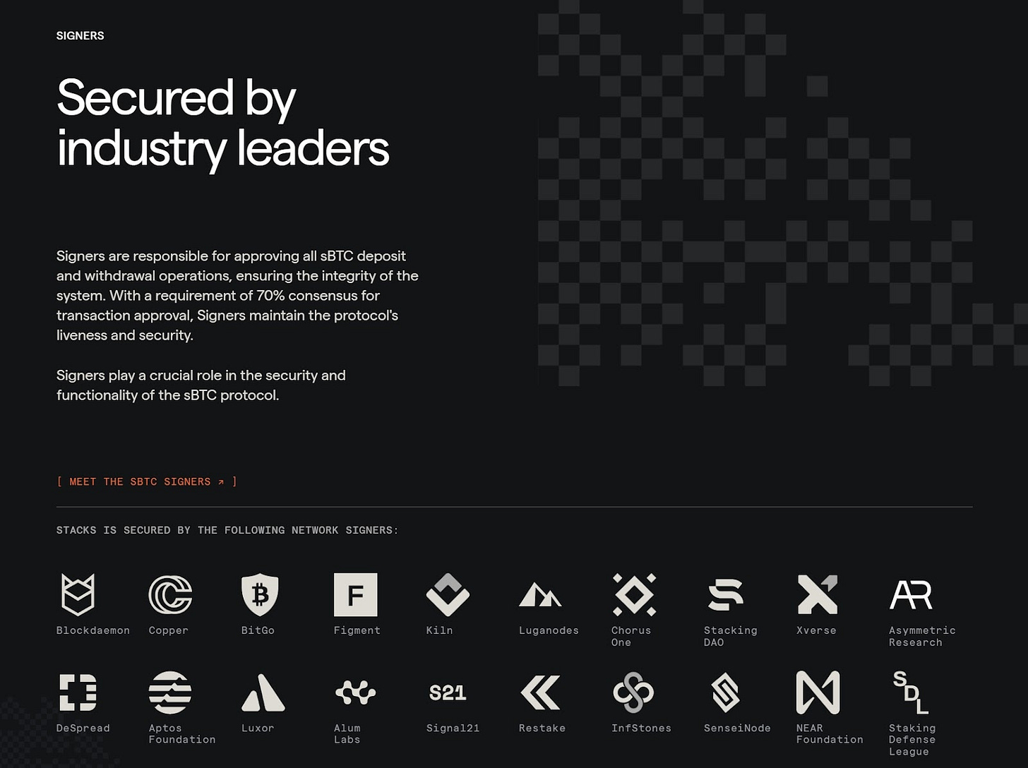 首先是去中心化,sBTC 是由大型签名者集群管理,这里面有 BitGo、Asymmetric、Ankr 等大机构,不是中央托管人或单一机构来控制,是目前最去中心化的 L2 上 BTC 版本之一。sBTC 的存款和提取过程都是通过智能合约和多重签名钱包来完成。而且随着项目发展,sBTC 的签名者网络是逐渐走向动态和开放的,可以由任何符合条件的节点参与。因此,sBTC 是高度去中心化的。