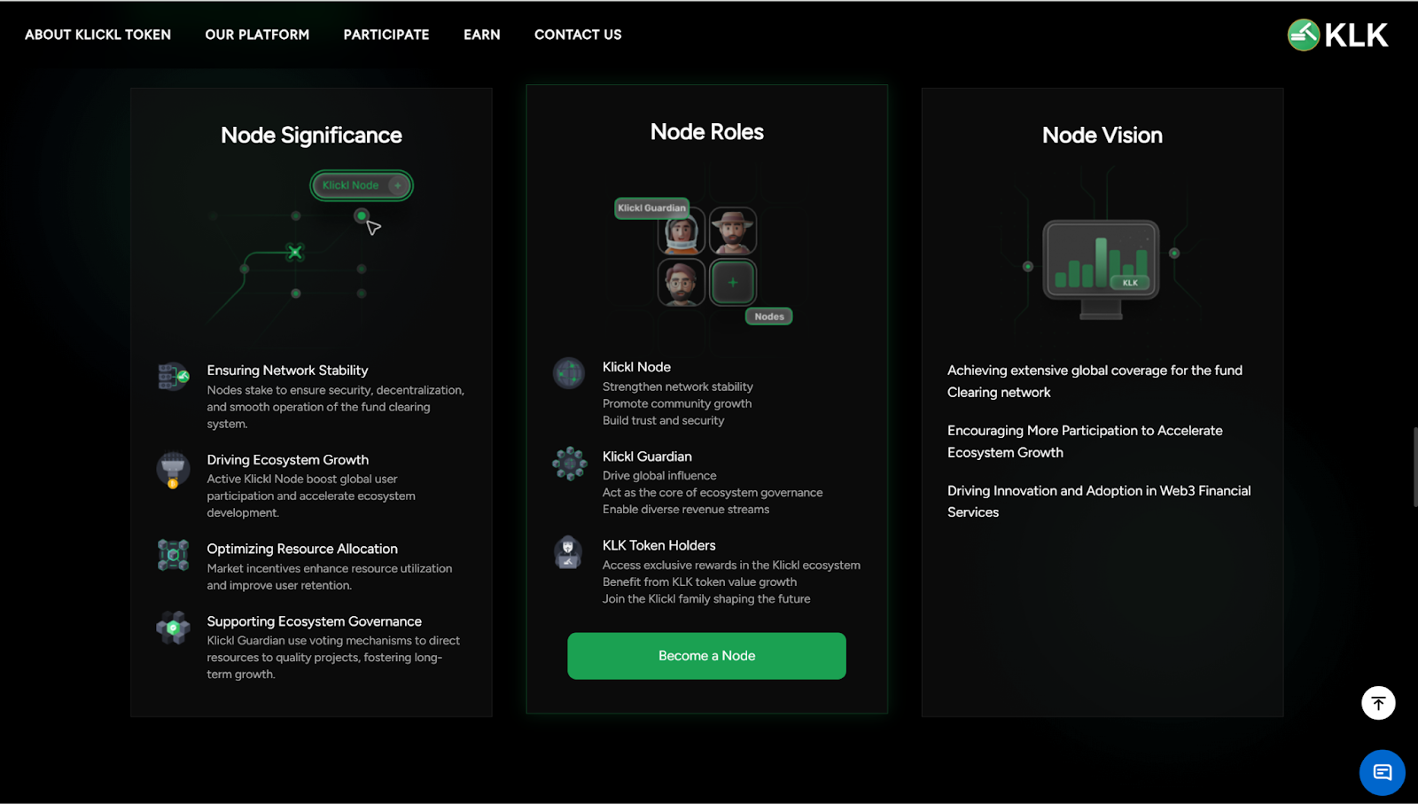 网络使用者,其实就是推动 Klickl 网络发展的最大动力,因为他们的支付行为背后代表的就是网络的收入,而 Klickl 基金会会将这些收入,去回购市场上的 KLK 奖励给网络里的用户和节点,让整个模型能够正向运行。