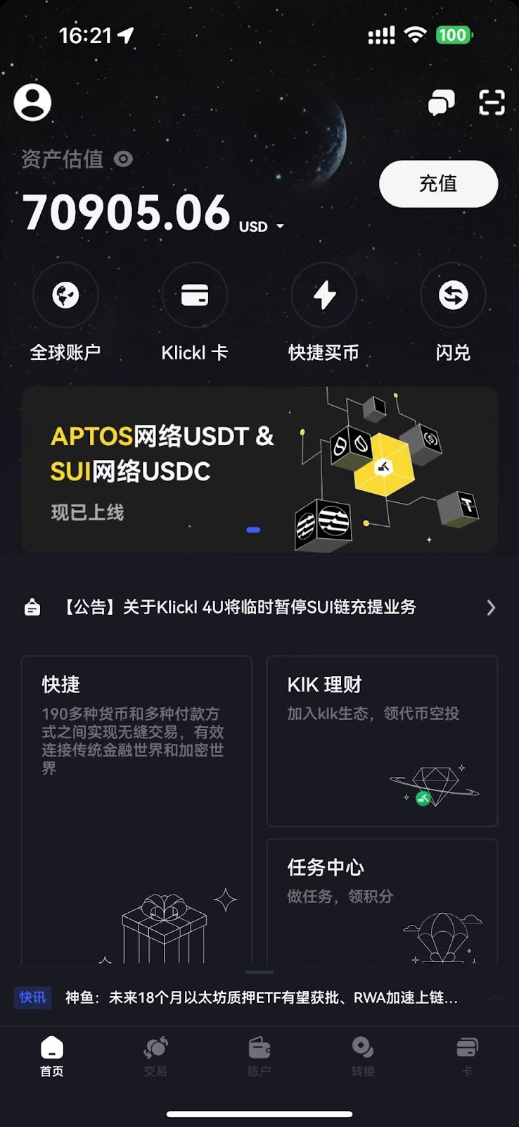 Klickl 的数字账户就相当于你的 Web3 钱包,用来存放你的加密资产,而且 Klickl 也有提供理财服务。