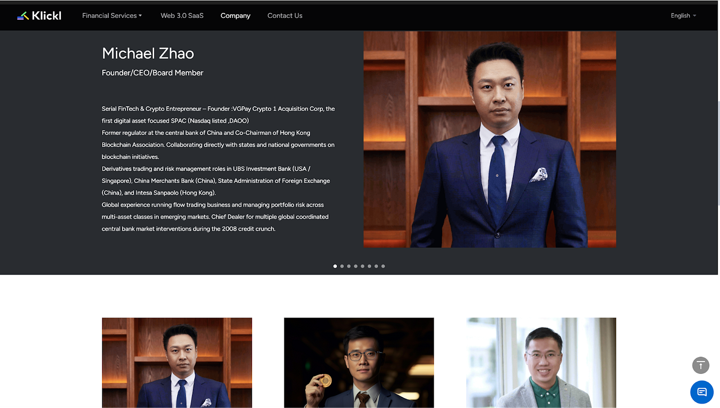 Michael 是从传统银行业出来创业的,在建立 Klickl 之前,他曾经在美国瑞银、意大利圣保罗银行工作,还出任过国内某家银行的行长职务,这样的经历让他对风险、监管、合规有非常深刻的认识,也非常重视这方面的工作。